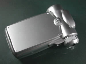 ด้านล่าง - จะเห็นแผ่นยางปิดกันฝุ่น ปั๊มตัวอักษรและสัญลักษณ์แสดงถึงช่องเสียบต่าง ๆ ที่ถูกซ่อนอยู่ทั้งช่องใส่ mini SD Card , AV-out และ mini USB Port ซึ่งใช้เป็นที่เสียบสายชาร์จแบตเตอรี่ในตัว