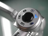 ด้านซ้ายของเครื่อง - เริ่มจากส่วนบนสุดจะเห็นรูปไอคอนต่าง ๆ วางเรียงเป็นวงกลมล้อมรอบปุ่มชัตเตอร์ ถัดลงมาที่ด้านข้างตัวเครื่องจะเป็นปุ่มปรับระดับเสียง และปุ่มลัด