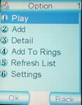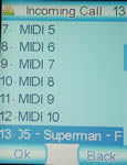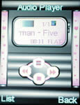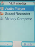 ในเครื่องมีเพลงมาให้ 12 เพลง และสามารถนำเพลงที่ดาวน์โหลด เสียงที่ได้จากการบันทึก หรือเพลง MP3 มาตั้งเป็นเสียงเรียกเข้าได้ 20 เพลง เครื่องเล่นเพลง (Audio Player)