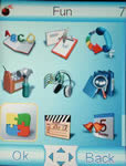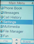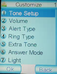 โดยในเมนู Phone Setup จะเป็นการตั้งค่า วัน เวลา ตั้งเวลาเปิดปิดเครื่อง ภาษา การแสดงผลหน้าจอ ความเข้มหน้าจอ ข้อความตอนรับ ปุ่มโทรด่วน เมนูลัดของปุ่มควบคุมทิศทาง และตั้งเปิด-ปิดการอัพเดตวัน เวลาแบบอัตโนมัติ Multimedia - เมนูเครื่องเล่นเพลง บันทึกเสียง และแต่งเพลง