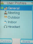 User Profiles - เมนูตั้งค่ารูปแบบเสียงเรียกเข้า มีให้เลือก 5 รูปแบบ คือ General, Meeting, Outdoor, Indoor และ Headset