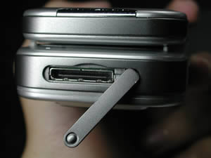 ด้านซ้าย - ช่องเสียบหูฟังและที่ปิดกันฝุ่น ถัดลงมาเป็นปุ่มลัดเปิดเครื่องเล่น MP3 และปุ่มลัดเข้าเมนูกล้องถ่ายรูป