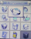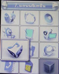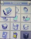 เมนูหลักแสดงผลได้ 2 แบบ คือ แบบตาราง มีไอคอนเป็นภาพเคลื่อนไหว วางเรียง 4 แถว 3 คอลัมน์ อีกแบบคือ เมนูหลักจะแสดงผลทีละเมนูเป็นภาพไอคอนเคลื่อนไหว แสดงเต็มหน้าจอ แต่ที่ใช้งานได้สะดวกก็คือ เมื่อเข้าไปในเมนูใด ๆ แล้วก็ตามสามารถใช้ปุ่มควบคุมทิศทางซ้าย-ขวา เพื่อเลื่อนดูเมนูหลักอื่น ๆ ได้ทันที