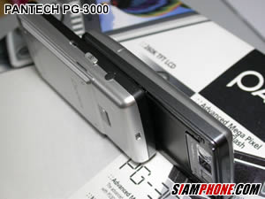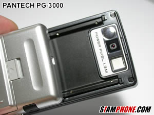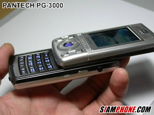 แพนเทค PG-3000 - ตัวเครื่องฝาสไลด์ขึ้น-ลง ขนาด 87 x 42 x 22 มิลลิเมตร น้ำหนัก 99.6 กรัม หน้าจอ TFT-LCD 1.8 นิ้ว แสดงผล 262,144 สี ความละเอียด 128x160 พิกเซล