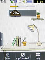 เมนูจะแสดงผลเป็นรูปไอคอน รวม 31 ฟังก์ชั่น ส่วนด้านล่าง จะมีแถบเมนู 4 เมนูประกอบไปด้วย ปุ่มกด (เปิดแผงปุ่มตัวเลข เพื่อโทรออก), สมุดโทรศัพท์, ข้อความ และ ย้อนกลับไปหน้าแรก