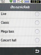 เครื่องเล่นเพลง เข้าโปรแกรมเครื่องเล่นเพลงหน้าแรกจะมีเมนูเพลงให้เลือก ได้แก่ แทร็กทั้งหมด, รายการเพลง, อัลบั้ม, นักร้อง, ประเภท, ที่เล่นบ่อยๆ, ที่เล่นไม่นานมานี้, พอตแคสต์, หรือเข้าการตั้งค่าเพื่อเลือกแสดง/ลบเมนูเพลงหน้าแรก รูปแบบอีควอไลเซอร์ (ปรับได้ทั้งหมด 11 แบบ : Normal, Rock, Jazz, Live, Classic, Megabass, Concert hall, Music clarity, Wide, Bass enhancement และ Externalisation) และตั้งค่าการเล่นเพลงเป็นพื้นหลัง