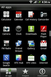 หน้าแอพพลิเคชั่นหลัก แสดงผลด้วยรูปภาพไอคอนพร้อมชื่อกำกับ จัดเรียงได้ 2 รูปแบบ คือแบบตาราง หรือแบบรายการ ใช้นิ้วเลื่อนบนหน้าจอขึ้น/ลง เพื่อเปลี่ยนไปดูแอพฯ ในส่วนที่เหลือ ด้านล่างจัดแบ่งหน้าให้เลือกแสดงแอพฯ ตามการจัดกลุ่ม แอพฯ ทั้งหมด, ที่เปิดใช้เป็นประจำ และดาวน์โหลด รวมทั้งสามารถแบ่งปันแอพพลิเคชั่นผ่านทางช่องทางต่างๆ ลบแอพฯ เรียงลำดับตามตัวอักษรขึ้นต้น หรือที่ใช้งานล่าสุดได้ รวมทั้งสามารถจัดเรียงหน้าใหม่ได้โดยแตะไอคอนที่จัดกลุ่มค้างไว้ และลากไปวางตำแหน่งใหม่แทน (โดยสามารถย้ายไอคอนที่แถบด้านล่างในหน้าเมนูอื่นๆ ได้เช่นกัน)