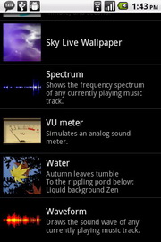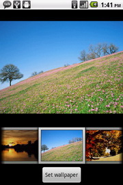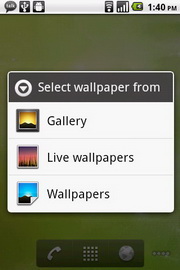 สำหรับภาพพื้นหลังบนหน้าจอสามารถกำหนดผ่านหน้าจอหลักได้ โดยกดปุ่มเมนู แล้วเลือก Wallpapers หรือแตะหน้าจอค้างไว้ เลือก Wallpapers จะพบหน้าต่างให้เลือกภาพพื้นหลังจาก Gallery, Live Wallpaper และ Wallpapers สำหรับรูปภาพใน Gallery สามารถเลือกพื้นที่ที่ต้องการใช้เป็นพื้นหลังได้