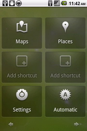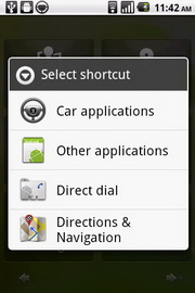 Car Home - แสดงผลในโหมดรถยนต์ สำหรับใช้งานขณะขับรถ มีปุ่มระบบนำทาง, โทรศัพท์, ค้นหาด้วยเสียง, รายชื่อ, เพลง, แผนที่, Places, ตั้งค่า ออกจากโหมดรถยนต์ และเลือกช็อตคัทแอพพลิเคชั่นกำหนดใช้งานในโหมดนี้เพิ่มเติม