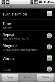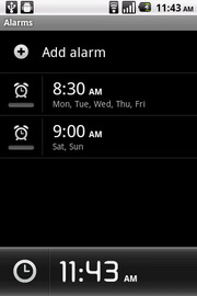 Clock - แสดงเวลา ด้านล่างมีปุ่มตั้งเวลานาฬิกาปลุก, เปิดคลังภาพ, เล่นเพลง และกลับหน้าหลัก