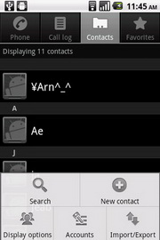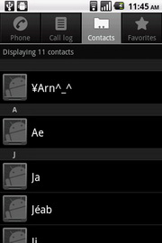 Contacts - รายชื่อผู้ติดต่อ จัดแบ่งหน้าแสดงปุ่มกดตัวเลข, ประวัติการโทร และรายชื่อโปรด