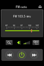 วิทยุ FM รับฟังวิทยุในระบบ FM โดยใช้ชุดหูฟังขนาด 3.5 มิลลิเมตรเป็นตัวรับสัญญาณ และฟังเสียงผ่านหูฟัง หรือฟังผ่านลำโพงเสียง มีระบบค้นหาคลื่นวิทยุอัตโนมัติ และบันทึกเป็นช่องไว้ในการเลือกรับฟัง หรือป้อนเลขคลื่นวิทยุเป็นจุดทศนิยม 2 ตำแหน่ง เพิ่มวิทยุที่ชื่นชอบเป็นรายการโปรด และฟังวิทยุเป็นพื้นหลังเมื่อออกจากโปรแกรมได้