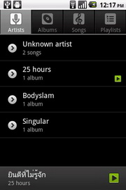 เครื่องเล่นเพลง รับฟังเพลงได้จากเมนู Music เครื่องเล่นเพลง จัดหมวดหมู่เพลงตามรายชื่อศิลปิน, อัลบั้ม, เพลง และรายการเพลง แสดงภาพหน้าปกอัลบั้ม (ถ้ามี) มีโหมดเล่นสุ่มรายชื่อ, เล่นวนซ้ำ และเล่นเพลงเป็นพื้นหลังเมื่อออกจากโปรแกรม
