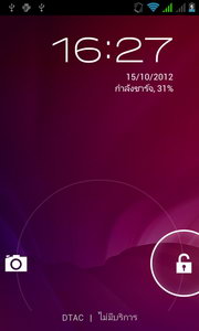 การปลดล็อค/ล็อคเครื่อง ผู้ใช้สามารถปลดล็อคหน้าจอได้โดยการกดปุ่มเปิด/ปิดเครื่อง หนึ่งครั้งจะปรากฏหน้าล็อคเครื่องอยู่ จากนั้นแตะปุ่มไอคอนรูปแม่กุญแจใช้นิ้วเลื่อนขึ้นไปด้านบนเพื่อปลดล็อคหน้าจอ หากต้องการล็อคเครื่องให้กดปุ่มเปิด/ปิด เครื่องหนึ่งครั้งหน้าจอจะดับไปอัตโนมัติ