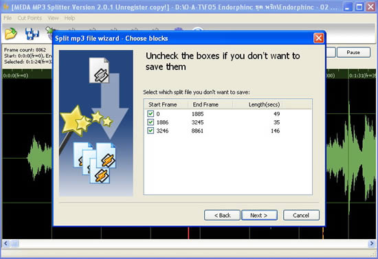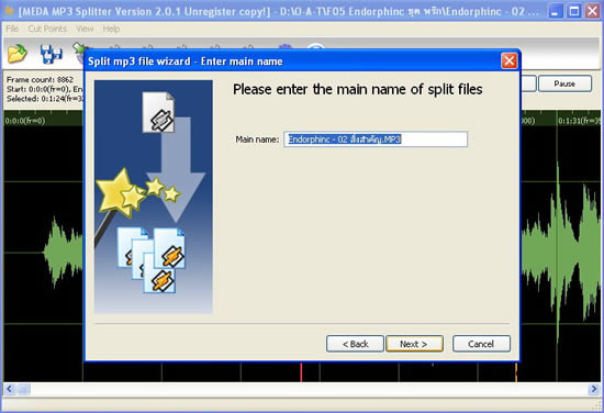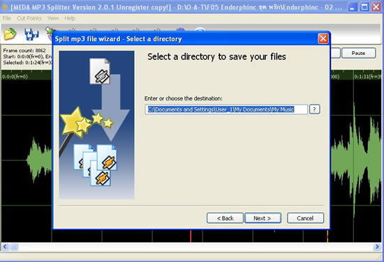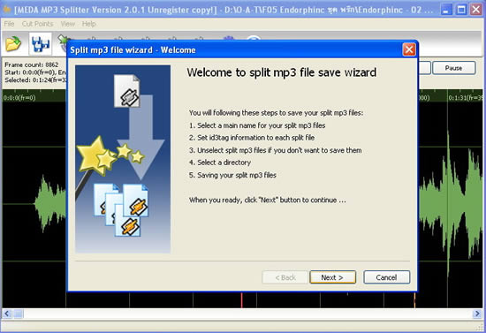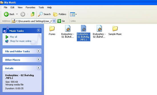 หลังจากนั้นไปยังที่เก็บไฟล์เพลงที่ตัดไว้ เราจะเห็นมีอยู่ 3 ไฟล์ด้วยกันครับให้เลือกไฟล์ที่ 2 นะ จะลงท้ายด้วย mp3.1 (อันนี้คืออันที่สองครับ) ไฟล์ตัวแรกจะลงท้ายด้วย mp3.0 และตัวสุดท้ายลงท้ายด้วย mp3.2 นะ อย่าเพิ่ง งง ซะหล่ะ คราวนี้ก็ก็อบลงเครื่องได้เลย หรือจะดัดแปลงเป็นไฟล์อะไรก็ตามใจ