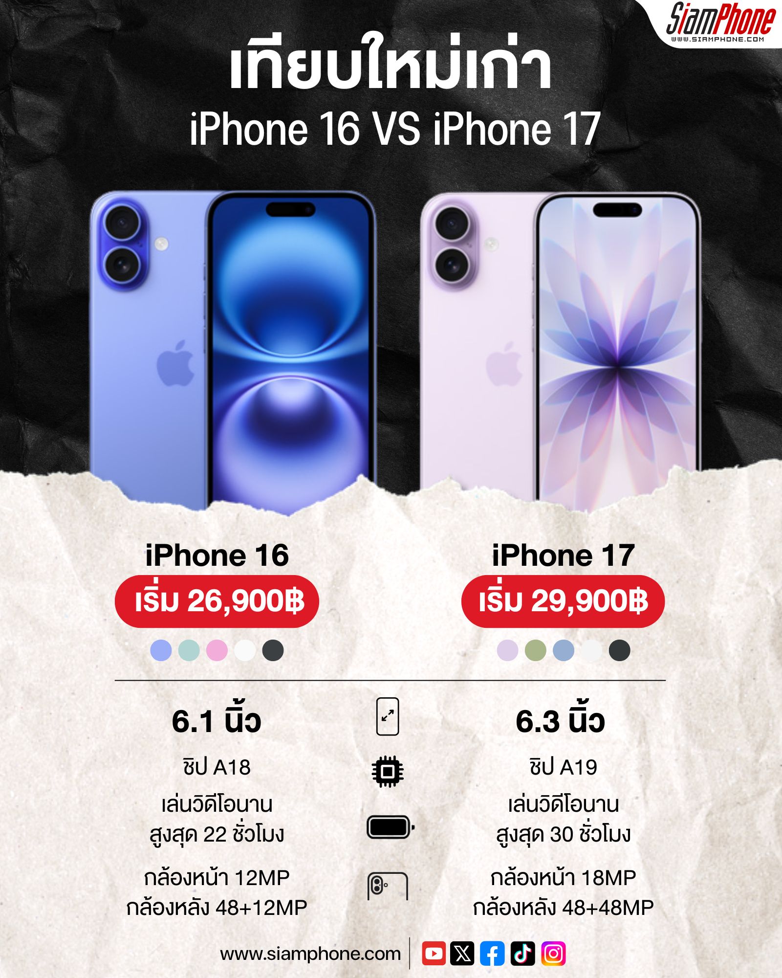 ใหม่เทียบเก่า iPhone 16 ปรับราคาลง เทียบรุ่นใหม่ iPhone 17 แตกต่างกันยังไง?