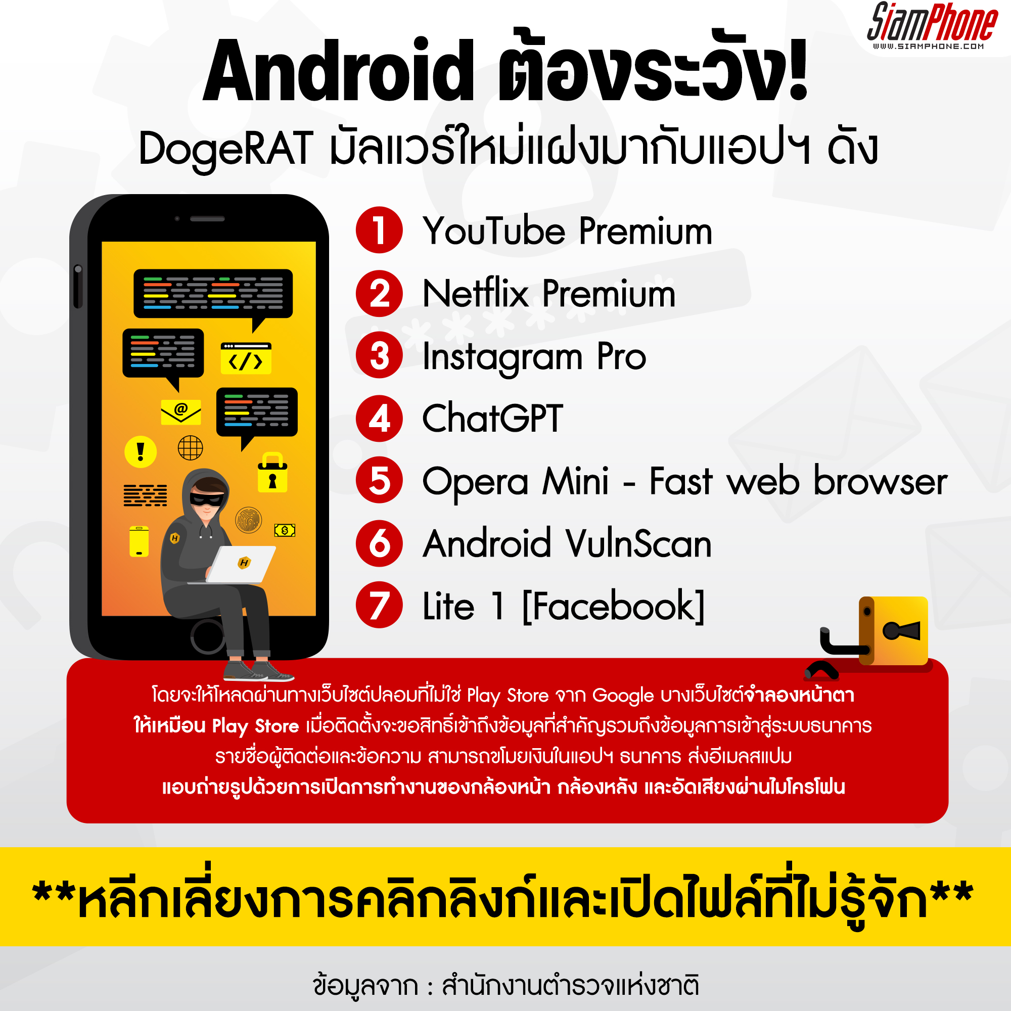 #DogeRAT, # Malware, # Android, # เตือนภัย, # Siamphone, # News, # NewsUpdate