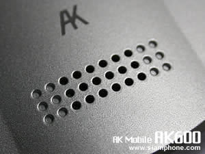 ด้านหน้า - มีเพียง โลโก้ AK และลำโพงสำหรับเสียงเรียกเข้าอยู่ตรงกลางด้านล่าง