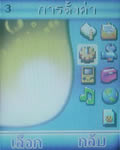 เข้าสู่เมนูโดยการกดปุ่มซอฟท์คีย์ซ้ายมือ หรือปุ่ม OK (ขณะสแตนด์บาย) เมื่อเข้าสู่เมนู จอแสดงผลด้านซ้ายจะแสดงภาพแอนิเมชั่น และด้านขวาจะเป็นไอคอนเมนูต่าง ๆ 9 เมนู ด้วยกัน