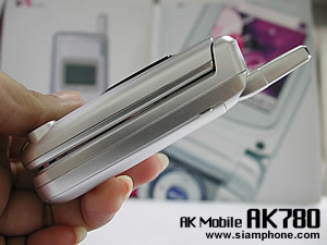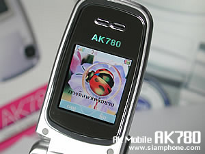 นอกจากเสียงเรียกเข้าที่เป็นเสียงเพลงแล้ว AK780 ยังสามารถตั้งเสียงพูดเมื่อมีผู้โทรเข้าได้ โดยสามารถเข้าไปตั้งค่าได้ที่เมนู Setting / เสียง / เตือน และเลือกเสียงพูด เมื่อใช้งานการเตือนแบบเสียงพูดนี้เมื่อมีผู้โทรเข้า จะมีเสียงพูดเป็นภาษาจีน และพูดเลขหมายโทรศัพท์ของผู้โทรเข้าเป็นภาษาอังกฤษ AK Mobile AK780 - กำหนดออกวางจำหน่าย เดือนสิงหาคม 2548 ราคา 5,900 บาท - อุปกรณ์ในกล่อง