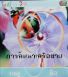 - การใช้งานเมนู เปิดเมนูโดยการกดปุ่มซอฟ์ทคีย์ด้านซ้ายมือ (มีรูปมือกดปุ่มสกรีนอยู่) หน้าจอจะแสดงภาพเคลื่อนไหว และมีรายการเมนูอยู่ด้านล่าง มีเสียงพูดชื่อเมนูต่าง ๆ เมื่อเราเลื่อนดูเมนู