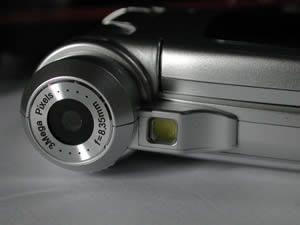 ด้านขวาของเครื่อง - จะเห็นเลนส์กล้องอยู่บนสุด ถัดลงมาเป็นไฟแฟลช