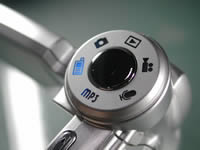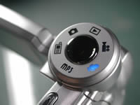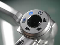 ด้านซ้ายของเครื่อง - เริ่มจากส่วนบนสุดจะเห็นรูปไอคอนต่าง ๆ วางเรียงเป็นวงกลมล้อมรอบปุ่มชัตเตอร์ ถัดลงมาที่ด้านข้างตัวเครื่องจะเป็นปุ่มปรับระดับเสียง และปุ่มลัด