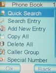 Phone Book - เมนูค้นหา เพิ่ม คัดลอก ลบ ตั้งกลุ่ม ตั้งหมายลขพิเศษ และตั้งค่าสมุดโทรศัพท์