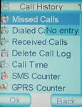 Call History - เมนูบันทึกรายการโทรออก รับสาย ไม่ได้รับสาย เวลาโทร ค่าโทร ตัวนับจำนวน SMS และ GPRS