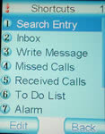 ปุ่มควบคุมแบบ 4 ทิศทาง - เมื่ออยู่หน้าจอสแตนด์บายสามารถใช้เป็นปุ่มลัดได้ กดขึ้นจะเข้าเมนูตั้งค่าเสียงเรียกเข้า กดล่างจะเข้าเมนูลัด (Shortcuts) กดซ้ายจะเข้าสู่กล่องรับข้อความ และกดขวาจะเข้าเมนูตั้งค่าการสั่นเตือน สามารถแก้ไขเมนูลัดของปุ่มควบคุมทิศทางได้ที่เมนู Settings > Phone Setup > Dedicated key ปุ่มโทรออก เมื่ออยู่หน้าจอสแตนด์บายสามารถกดเข้าไปดูรายการโทรได้ และปุ่มวางสายนั้นใช้เป็นปุ่มเิปิด-ปิดเครื่อง สำหรับปุ่มกดตัวเลข 2 ถึง 9 ใช้เป็นปุ่มโทรด่วน โดยเข้าไปตั้งหมายเลขโทรศัพท์ของแต่ละปุ่มได้ที่เมนู Settings > Phone Setup > Speed Dial