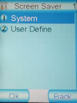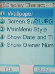 เข้าไปตั้งค่าหน้าจอได้ที่เมนู Settings > Phone Setup > Display Characteristic ซึ่งในเมนู Display Characteristic จะมีเมนูย่อยให้ตั้งค่าภาพพื้นหลัง ภาพพักหน้าจอ และการแสดงผลของเมนู รวมทั้งกำหนดเปิด/ปิด การแสดงผลวัน เวลา และหมายเลขโทรศัพท์ของตนเองบนภาพพื้นหลังได้