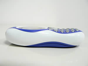 ด้านหน้า - เน้นสีสันสดใส ตัวเครื่องทีได้รับมาทดสอบเครื่องนี้เป็นสีน้ำเงินตัดกับสีขาว หน้าจอด้านหน้าเป็นหน้าจอ B/W หรือหน้าจอขาวดำ ขนาด 128 x 96 พิกเซล ถัดลงมาเป็นชุดปุ่มควบคุมการทำงานและปุ่มตัวเลข