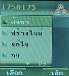 จะแสดงรายชื่อที่บันทึกไว้ในซิมการ์ด ผู้ใช้สามารถเลื่อนเพื่อค้นหารายชื่อที่ต้องการ และกดปุ่ม ยกหูโทรศัพท์ เพื่อโทรออกได้ทันที หากผู้ใช้อยู่หน้าจอสแตนด์บาย ก็สามารถกดปุ่มทิศทางล่าง เพื่อเข้ามาสู่สมุดโทรศัพท์ได้เช่นกัน ในเมนูนี้ผู้ใช้สามารถกดปุ่มซอฟท์คีย์ด้านซ้ายเพื่อเลือก ใช้งานต่าง ๆ ได้ดังนี้ ค้นหารายชื่อ เพิ่มชื่อลงในสมุดโทรศัพท์ แก้ไขข้อมูล ลบข้อมูล คัดลอกข้อมูลสมุดโทรศัพท์ระหว่างซิมการ์ดกับมือถือ และยังตั้งค่ากลุ่มผู้โทร ได้ 6 กลุ่ม ด้วยกัน ที่สำคัญมีเมนูเพิ่มในแบล็กลิสต์ กรณีที่เราไม่ต้องการรับสายใครก็ตาม