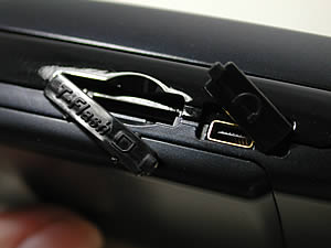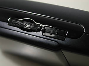 ด้านซ้าย - ช่องเสียบชุดหูฟัง กับช่องใส่ T-Flash Card พร้อมแผ่นยางปิดกันฝุ่น