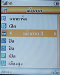 เมนูแสดงผลได้ 2 แบบ โดยตัวเครื่องจะกำหนดมาเป็นแบบ Matrix เมนูหลักแสดงผลเป็นภาพไอคอนเคลื่อนไหววางเรียงแบบตาราง 4 แถว 3 คอลัมน์ สำหรับการแสดงผลเมนูหลักอีกแบบหนึ่งคือ Page เมนูหลักจะแสดงผลทีละเมนู เป็นภาพไอคอนเคลื่อนไหวขนาดใหญ่ สามารถเข้าไปตั้งค่าการแสดงผลของเมนูหลักได้ที่เมนู Settings > Phone Setup > Display Setting > Main Menu Style