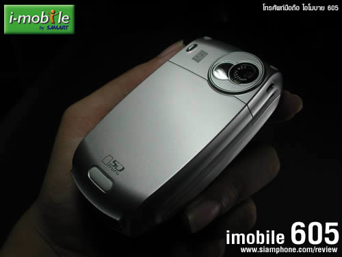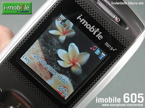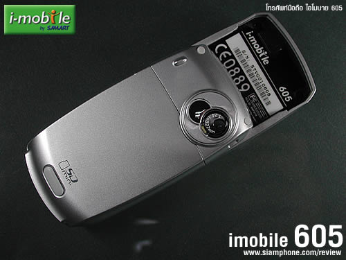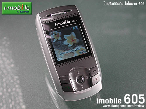 หากเพลงกำลังเล่นอยู่สามารถใช้ปุ่มจอยสติ๊กเลื่อนซ้าย-ขวาเพื่อปรับระดับเสียง และบน-ล่างสำหรับเปลี่ยนเพลง ในการตั้งค่าเครื่องเล่นนั้นใช้ปุ่มซอฟต์คีย์ขวา จะมีเมนูให้ตั้งค่า Skin, Repeat Mode, และ Equalizer สำหรับเครื่องเล่นวิทยุนั้นรองรับคลื่นความถี่ FM ในการรับฟังต้องเสียบหูฟังของ i-mobile 605 ก่อน ถึงจะเปิดเมนู FM Radio ขึ้นมาได้ กล้องดิจิตอล (Digital camera)