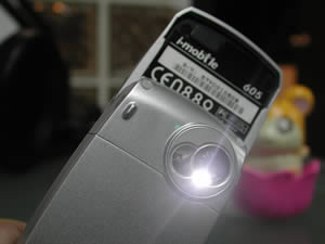 ด้านหลัง - มีเลนส์กล้องดิจิตอลพร้อมไฟแฟลชติดอยู่ที่มุมบนขวา ถัดลงมาเป็นกรอบฝาหลังที่ครอบแบตเตอรี่ไว้ มีที่ปลดล็อคอยู่ตรงกลางด้านล่าง เมื่อกดที่ปลดล็อคและเลื่อนฝาครอบออกมา ถอดแบตเตอรี่ออก จะเห็นช่องใสซิมการ์ด และ miniSD card