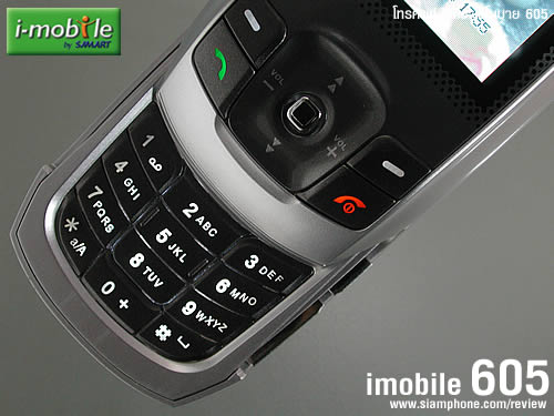 ด้านหน้า - เริ่มจากกึ่งกลางส่วนบนสุดบริเวณแทบโลหะสีเงิน เป็นลำโพงเสียง ถัดลงมาใต้โลโก้ i-mobile เป็นจอแสดงผลหลัก ในส่วนล่างจะเป็น ปุ่มซอฟต์คีย์ ซ้าย-ขวา ปุ่มควบคุมทิศทาง ปุ่มโทรออกและปุ่มวางสาย เมื่อเลื่อนฝาสไลด์ขึ้นจึงจะเห็นปุ่มกดตัวเลข