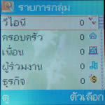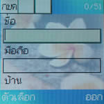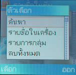 เมนูแสดงผลเป็นไอคอนภาพเคลื่อนไหว วางเรียงแบบ 3 x 3 (3 แถว 3 คอลัมน์) รวม 9 เมนูหลัก ด้วยกัน รายชื่อ - เมนูดู เพิ่ม คัดลอก ลบ รายชื่อในสมุดโทรศัพท์ และตั้งกลุ่มผู้โทรได้