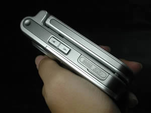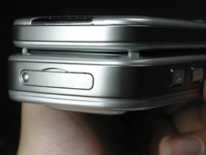 ด้านซ้าย - ช่องเสียบหูฟังและที่ปิดกันฝุ่น ถัดลงมาเป็นปุ่มลัดเปิดเครื่องเล่น MP3 และปุ่มลัดเข้าเมนูกล้องถ่ายรูป