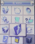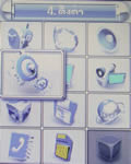 เมนูหลักแสดงผลได้ 2 แบบ คือ แบบตาราง มีไอคอนเป็นภาพเคลื่อนไหว วางเรียง 4 แถว 3 คอลัมน์ อีกแบบคือ เมนูหลักจะแสดงผลทีละเมนูเป็นภาพไอคอนเคลื่อนไหว แสดงเต็มหน้าจอ แต่ที่ใช้งานได้สะดวกก็คือ เมื่อเข้าไปในเมนูใด ๆ แล้วก็ตามสามารถใช้ปุ่มควบคุมทิศทางซ้าย-ขวา เพื่อเลื่อนดูเมนูหลักอื่น ๆ ได้ทันที