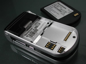 ด้านหลัง - ปุ่มปลดล๊อคฝาหลังอยู่กึ่งกลางเครื่อง ใช้วิธีเลื่อนขึ้นและแกะฝาหลังอกมา โดยฝาหลังจะเป็นแบตเตอรี่ในตัว เมื่อเปิดฝาหลังออกแล้วจะเห็นช่องใส่ซิมการ์ดและการ์ดหน่วยความจำภายนอกแบบ MMC