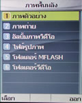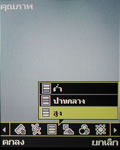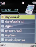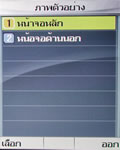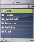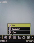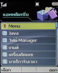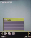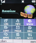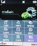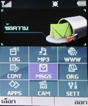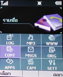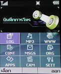 เมนูวางเรียงแบบตาราง 3 x 3 (3แถว 3 คอลัมน์) โดยจะแบ่งจอแสดงผลออกเ็ป็นสองส่วน ส่วนบนจะแสดงภาพเมนูที่ถูกเลือก ส่วนด้านล่างจะเป็นเมนูหลักที่วางเรียงอยู่ในตาราง บันทึกการโทร - เมนูบันทึกรายการโทรออก รับสาย ไม่ได้รับสาย ลบบันทึกการโทร ตัวนับจำนวนข้อมูล เวลาและค่าโทรศัพท์ MP3 - เมนูเครื่องเล่นเพลง MP3 รายชื่อเพลง และการตั้งค่าการเล่นเพลง