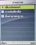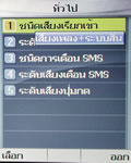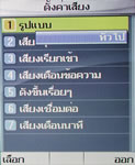 การตั้งค่า - เมนูตั้งค่าเสียง จอแสดงผล นาฬิกา ตั้งค่าการโทร การเชื่อมต่อข้อมูล อินฟราเรด เครือข่าย และตั้งค่าปุ่มความคุมทิศทาง