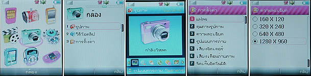 กล้องถ่ายรูป (Digital Camera) - รองรับการถ่ายภาพนิ่งระดับ 1.3 ล้านพิกเซล ขนาดสูงสุด 1280x960 พิกเซล ปรับลดลง 3 ระดับ (640x480, 320x240 และ 160x120 พิกเซล) ระบบซูมภาพดิจิตอล 4 เท่า