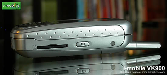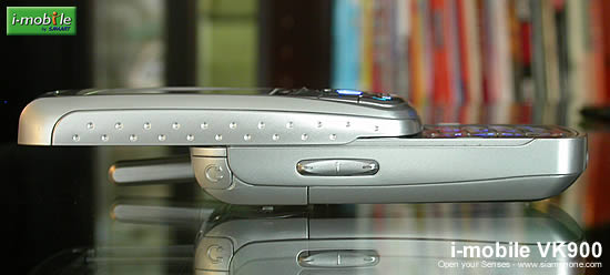 ด้านบน & ล่าง - ช่องอินฟราเรด (IrDA) สำหรับใช้งานรีโมทคอนโทรล และโอนรูปภาพหรือเพลงระหว่างคอมพิวเตอร์ และ VK900 ด้านล่างจุกยางกันฝุ่นปิดช่องเสียบสายชาร์จแบตเตอรี่