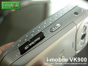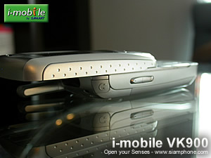 ด้านข้าง - ปุ่มเพิ่ม-ลดระดับเสียง อีกฝั่งจะมีช่องใส่การ์ดหน่วยความจำ miniSD สำหรับเก็บรูปถ่าย, เพลง และข้อมูลภายในเครื่อง ใกล้ๆ กันเป็นปุ่มชัตเตอร์ + ปุ่มลัดเรียกใช้งานกล้องถ่ายรูป