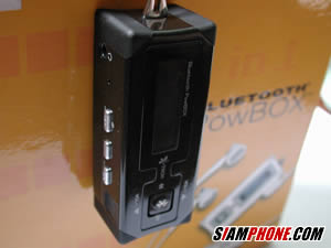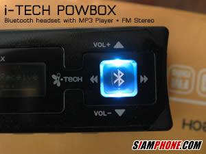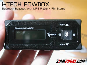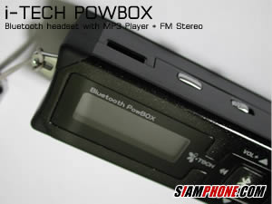 สำหรับส่วนของการใช้งานเป็น Bluetooth Headset ซึ่งไม่ว่าในขณะนั้นคุณกำลังจะฟังรายการจากทางวิทยุหรือฟังเพลง MP3 เมื่อมีสัญญาณโทรศัพท์เข้า PowBox จะตัดการทำงานของทั้งสองส่วนโดยอัตโนมัติ และสามารถเลือกกดรับสายจากปุ่มสัญลักษณ์บลูทูธซึ่งอยู่ที่ตัวเครื่องเล่น หรือจะกดรับสายผ่านทางชุดหูฟัง โดยชุดหูฟังจะแบ่งเป็นสองส่วน คือ ส่วนที่ใช้สำหรับฟังเพลง และส่วนที่ใช้งานเป็นไมโครโฟนสำหรับสนทนา หลังจากวางสาย ก็จะกลับเข้าสู่การทำงานปกติโดยอัตโนมัติครับ