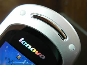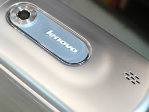 เลนส์กล้องดิจิตอลถูกติดอยู่ส่วนบนด้านหน้าเครื่องภายใต้กรอบโลโก้ Lenovo ทางด้านล่างเยื้องไปทางขวาจะเป็นรูลำโพงสำหรับเสียงเรียกเข้า