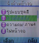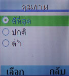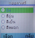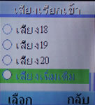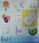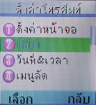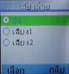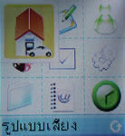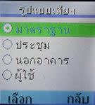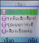 เมนูแสดงผลแบบไอคอนแอนิเมชั่นวางเรียงแบบ 3 แถว 3 คอลัมน์ รวม 9 เมนูด้วยกัน ใช้ปุ่มควบคุมทิศทางในการเลื่อนดูเมนู และปุ่ม OK ในการเปิดเมนู ปุ่มซอฟท์คีย์ขวาสำหรับย้อนกลับ รูปแบบเสียง - เมนูตั้งค่ารูปแบบเสียงเรียกเข้ามี 4 รูปแบบด้วยกัน คือ มาตรฐาน ประชุม นอกอาคาร และผู้ใช้